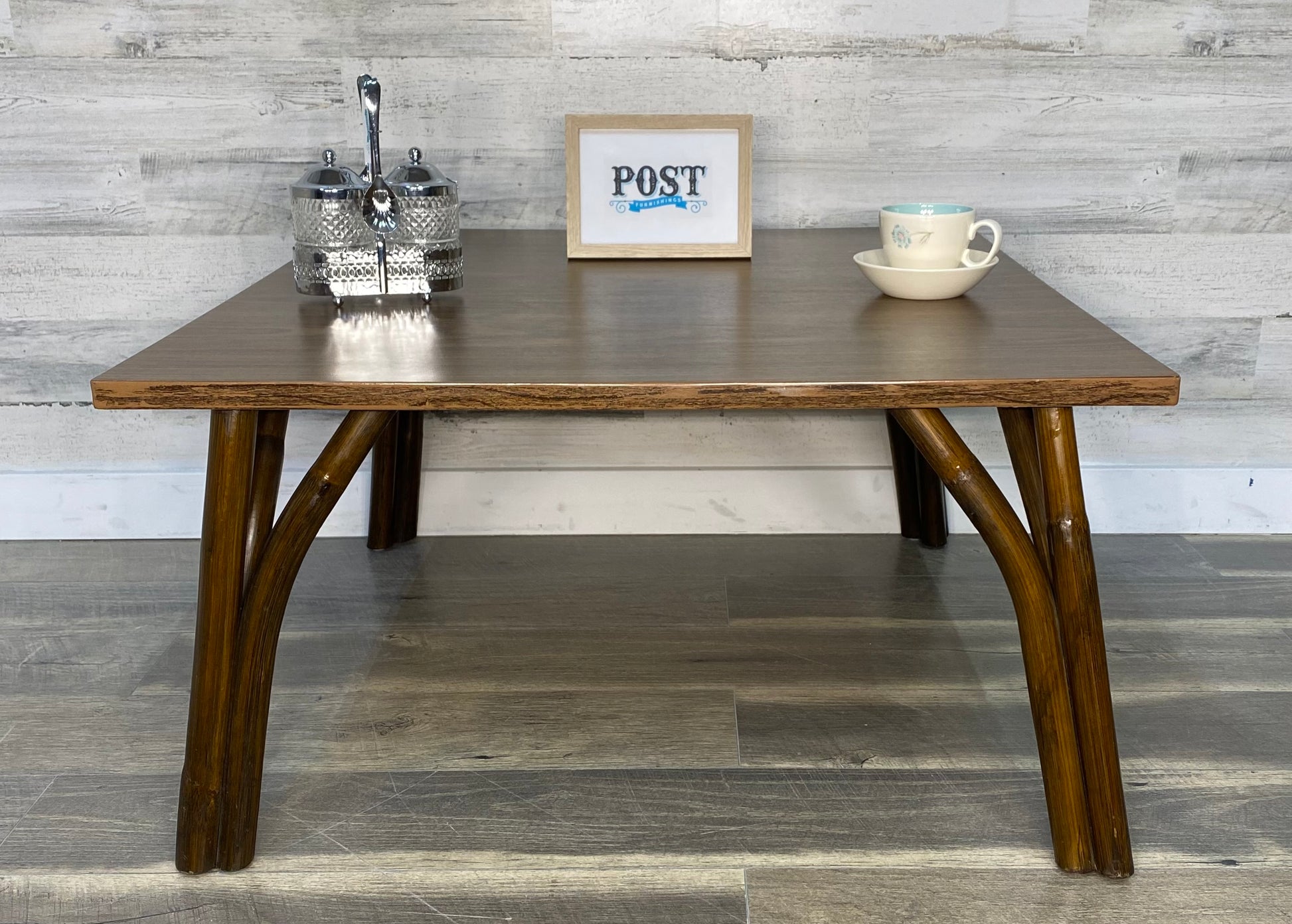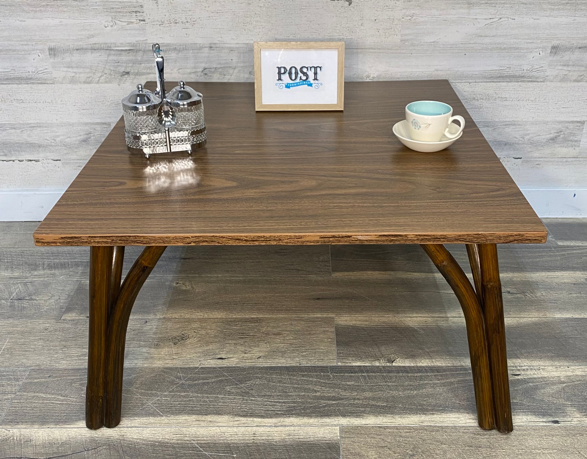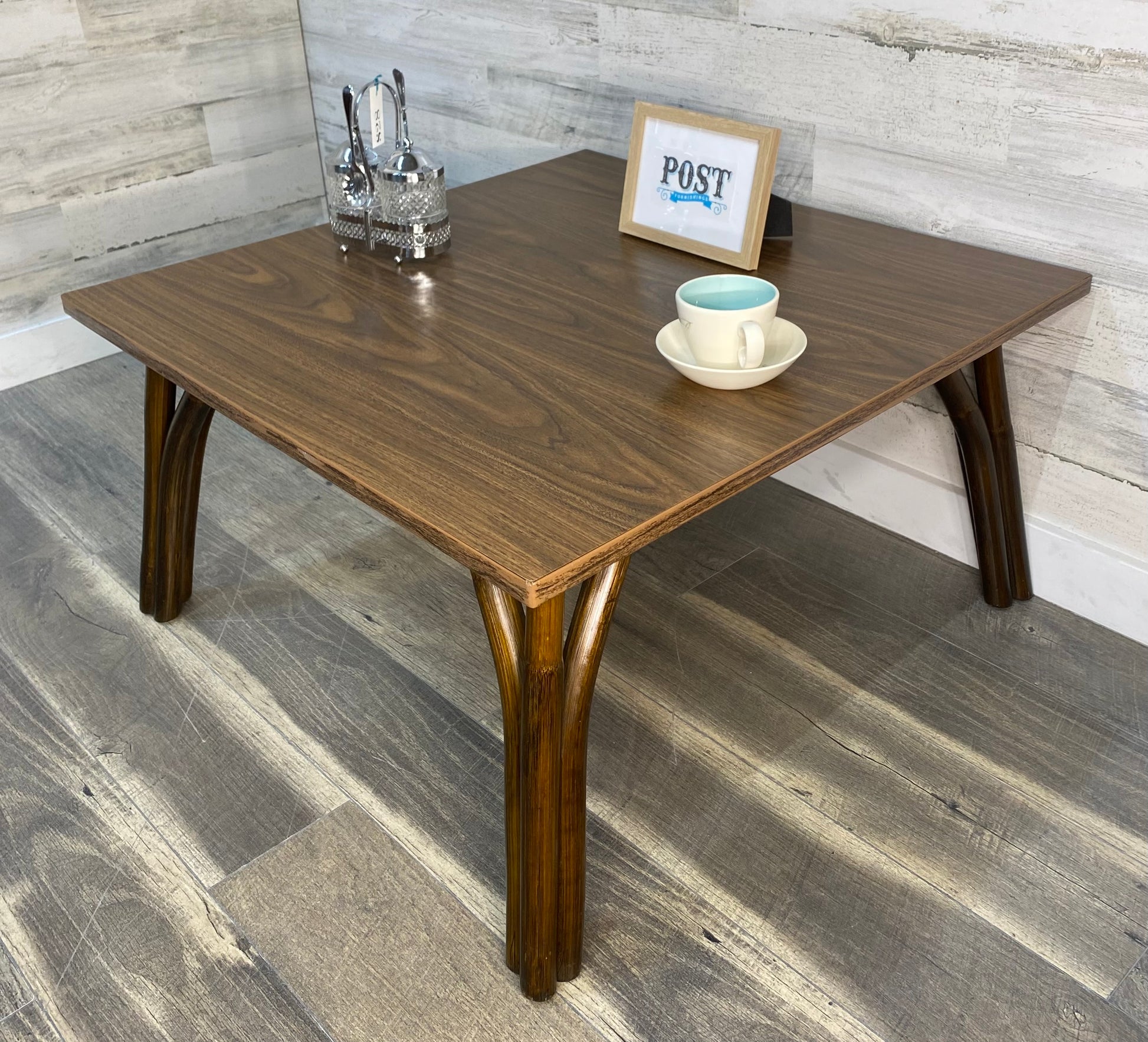 Mid century vintage coffee table. Vent wood bamboo legs. Stunning design and very sturdy.