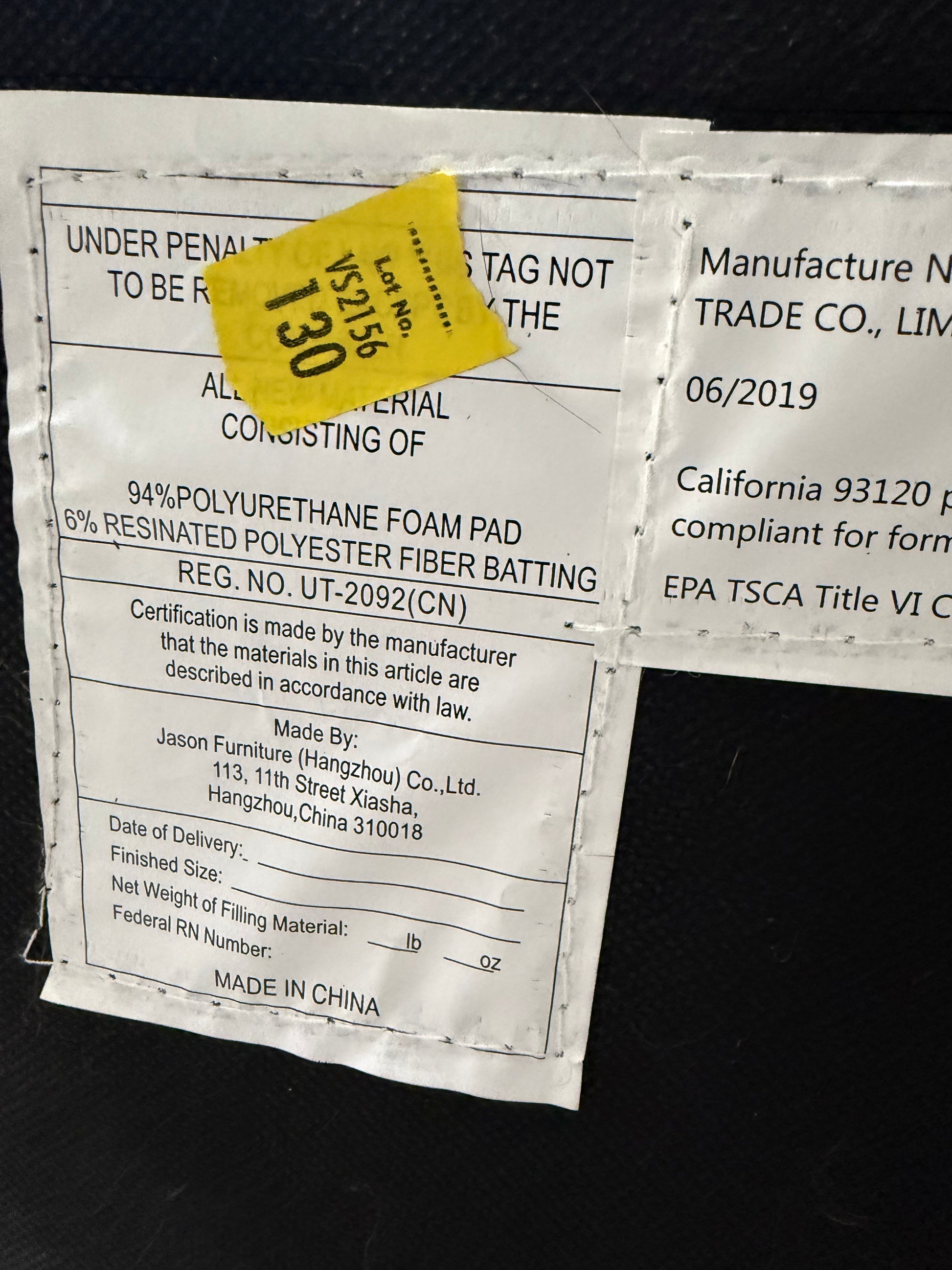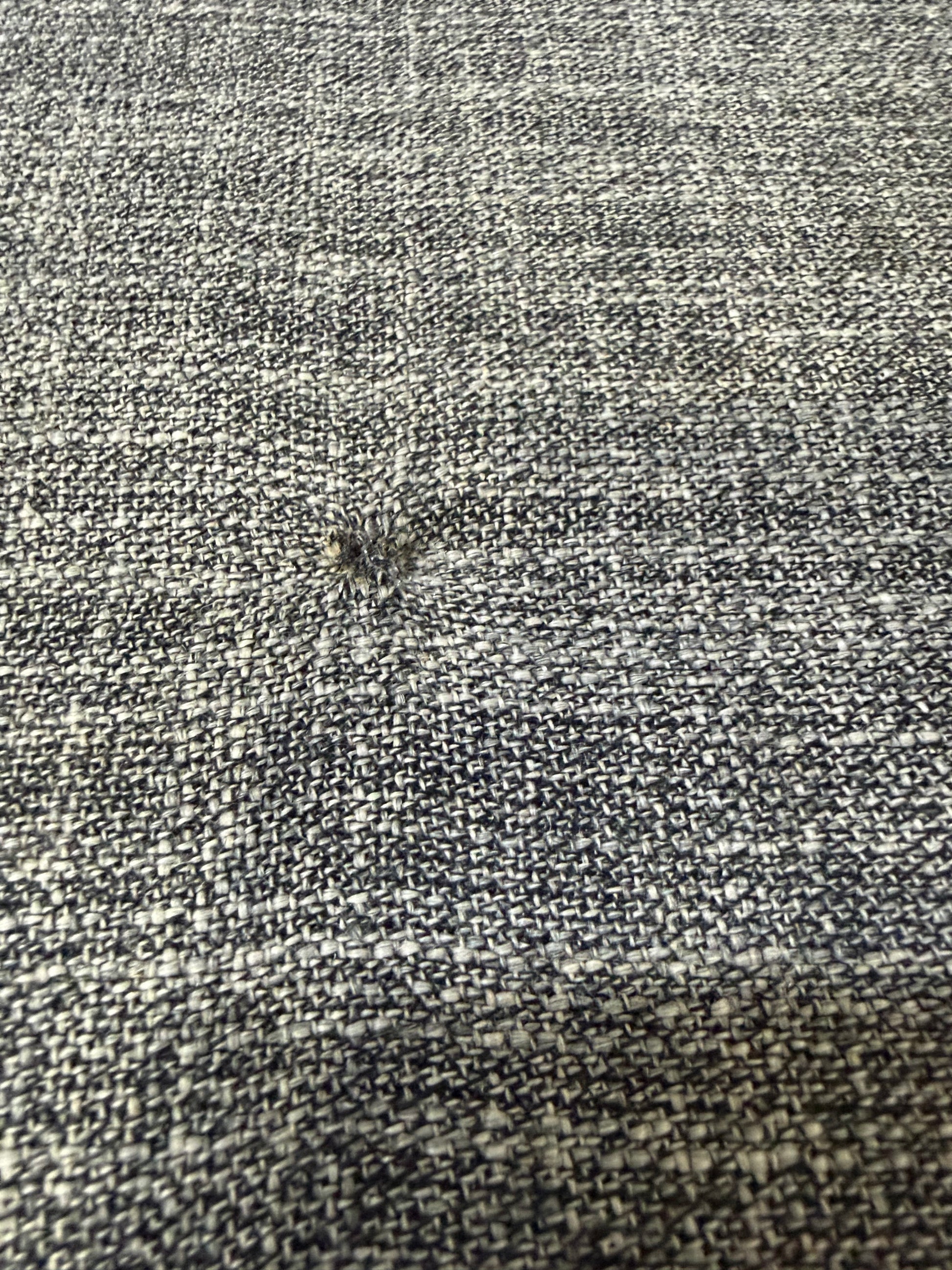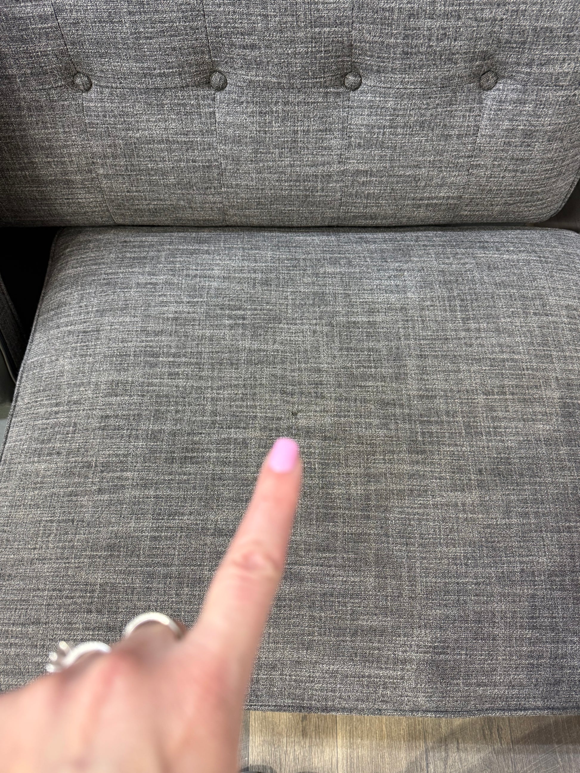 Mid century modern style sectional. 2 pieces connect together. Gray material with tufted button back. 1 very small hole was repaired. See pics.