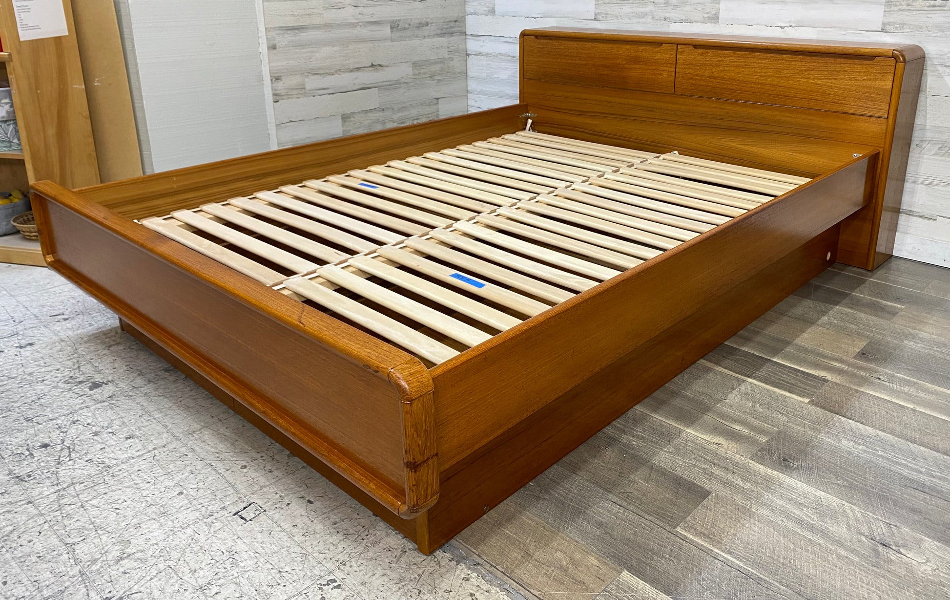 Mid Century Danish Style bed frame. Teak wood, Queen size. Platform Bed Frame with storage!