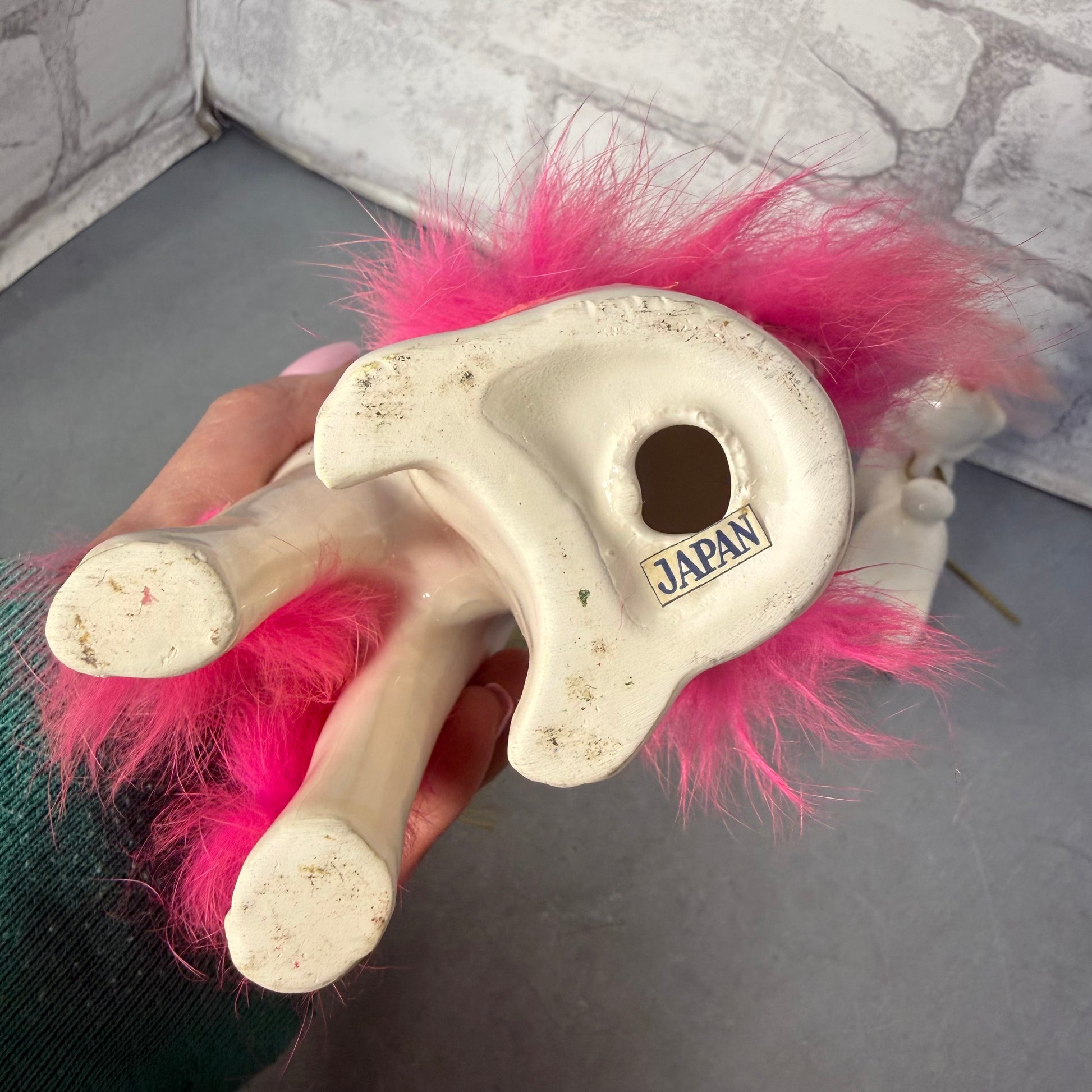 Mid century modern figurines. Poodle with 2 puppies. Made in Japan. Pink fuzzy hair is a bit faded.