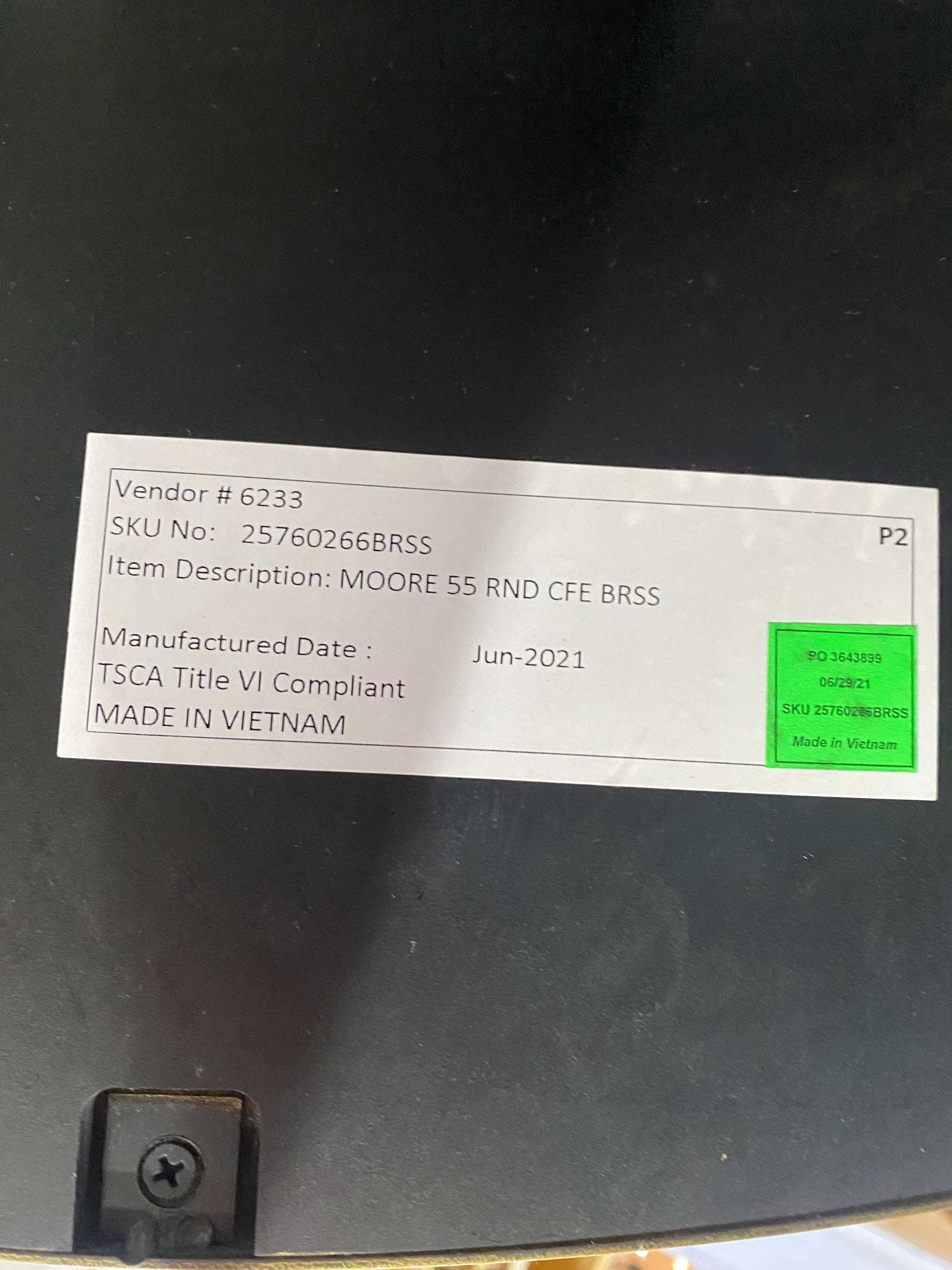 Restoration Hardware glass top coffee table. Gold base (has some scuffs as seen in pics) dark tinted glass top comes off ( has a couple scratches but no cracks)