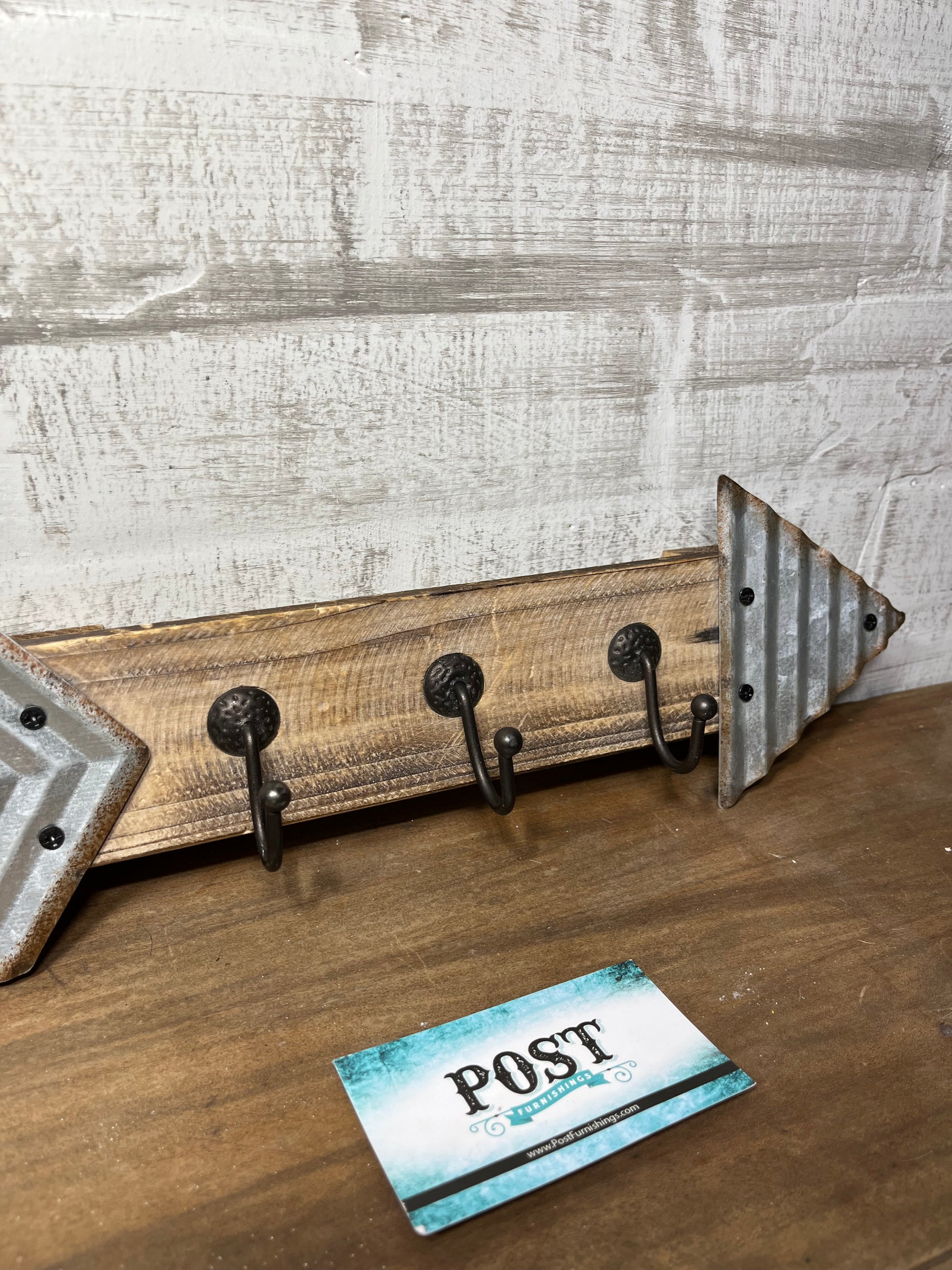Made from solid wood with galvanized detailing, rustic decor, it has three hooks, great for entryway, leashes, hats, keys etc. it is 15” long, 4” wide