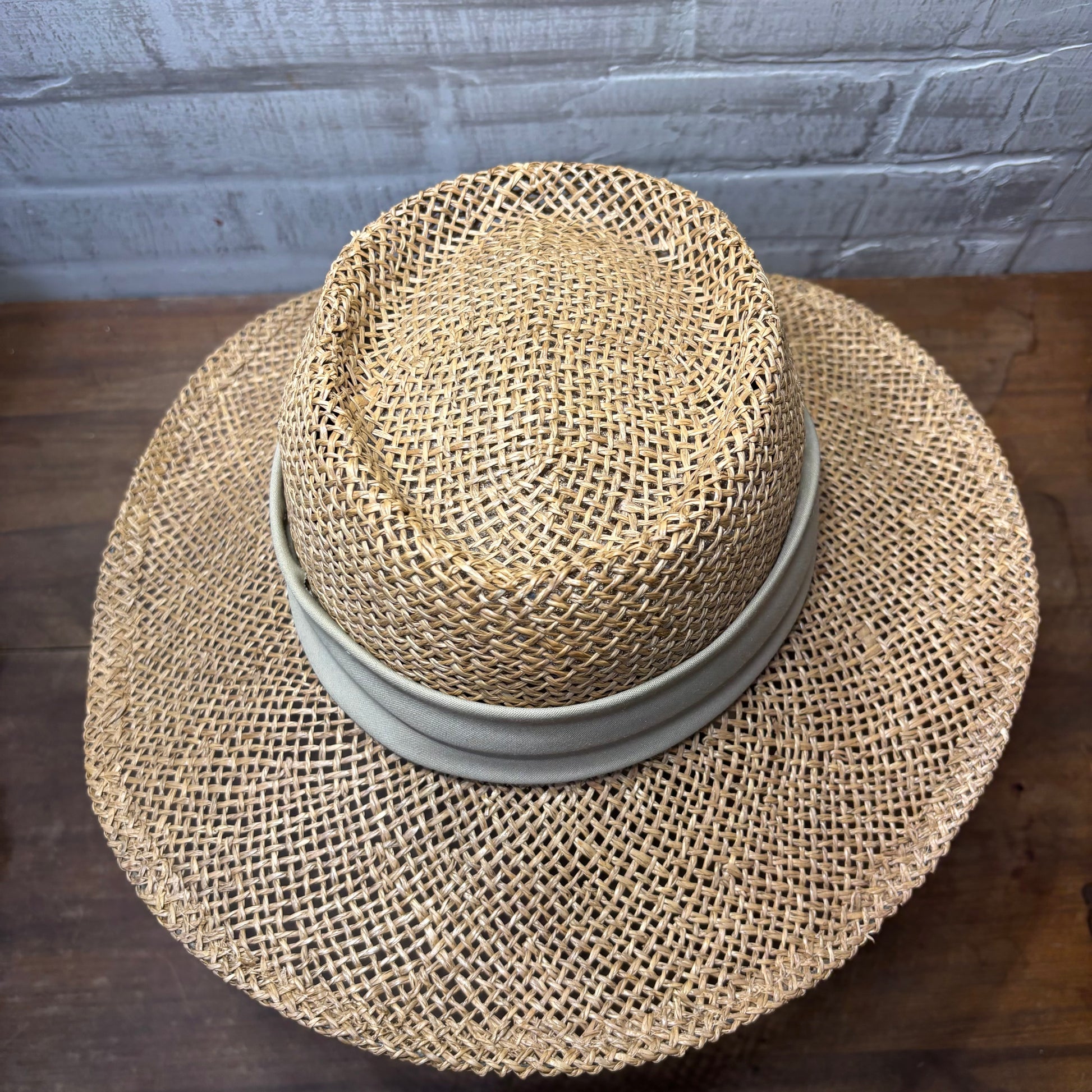 Woven straw hat with a tan band, made by the brand Stetson Mallory edition, size small 6 3/4- 6 7/8