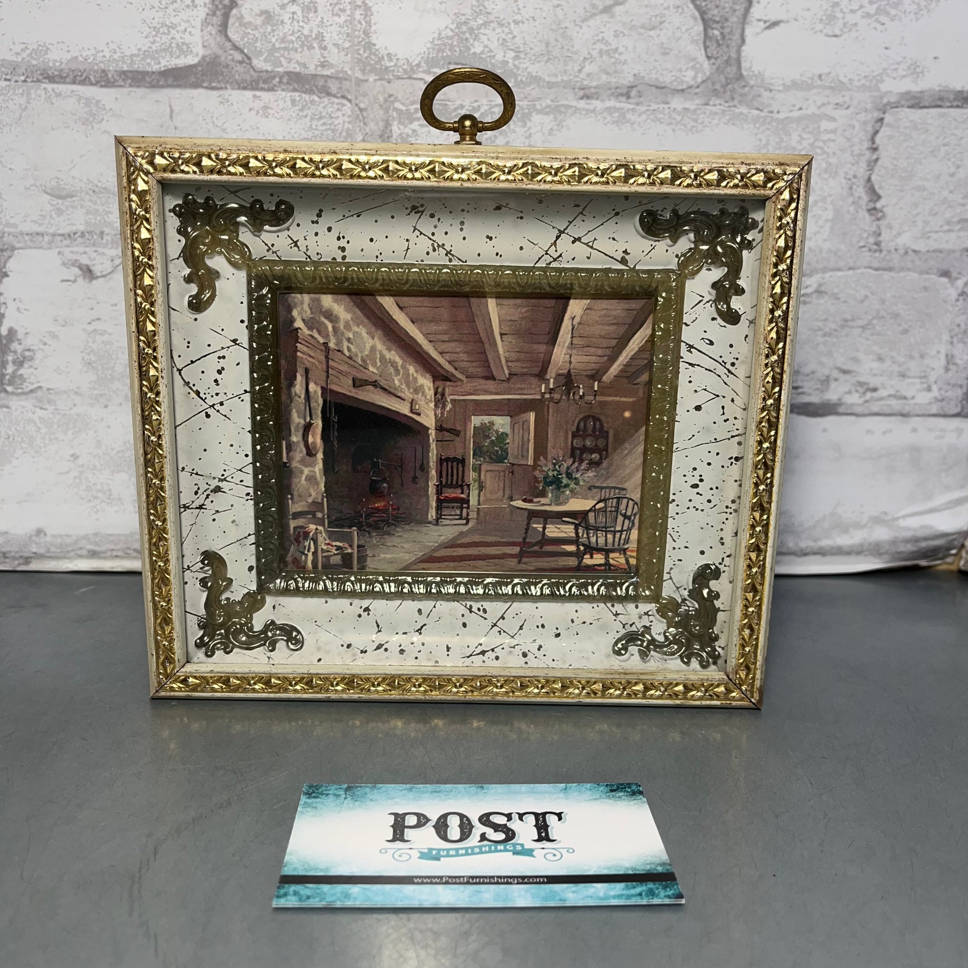 Art prints are in a framed shadow box adding depth and dimension to the artwork, vintage foil art prints, they have silver and gold filigree, hang it on the wall or display table top, they are 6.5” wide, 7.5” long
