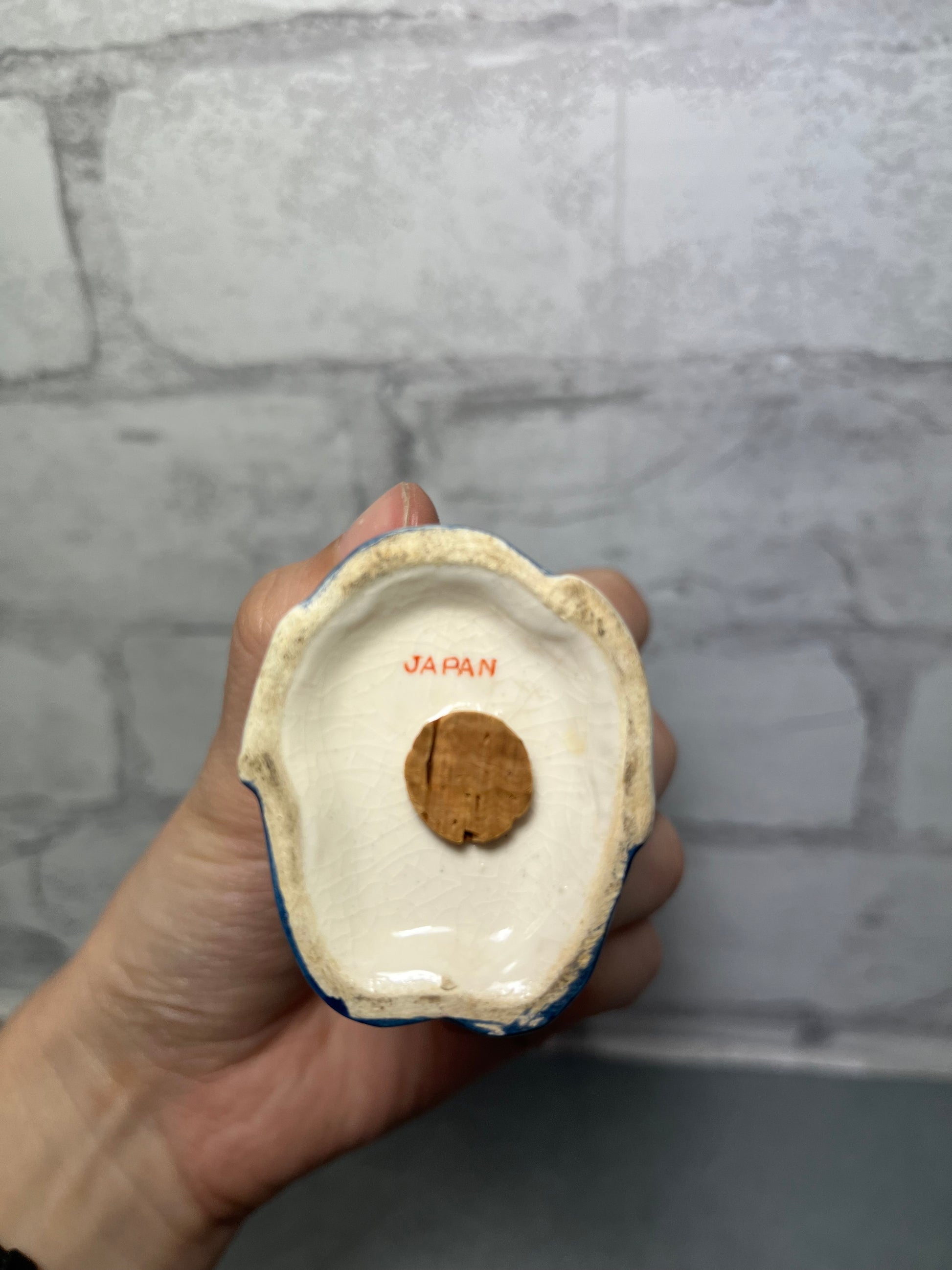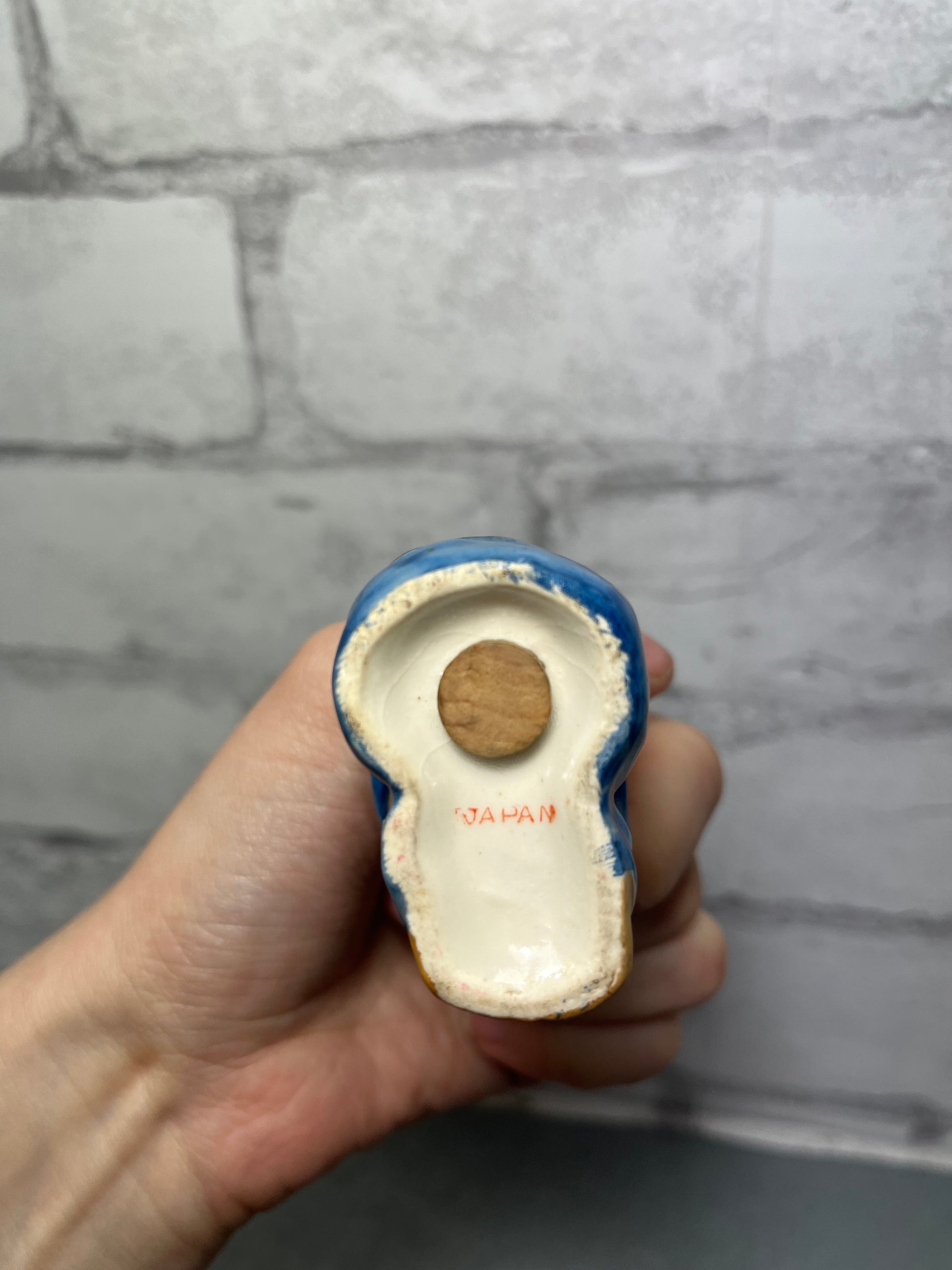 Made of ceramic, these vintage salt and pepper shakers, made in Japan, they have cork plugs, they are 2.5” tall, 1.5” wide