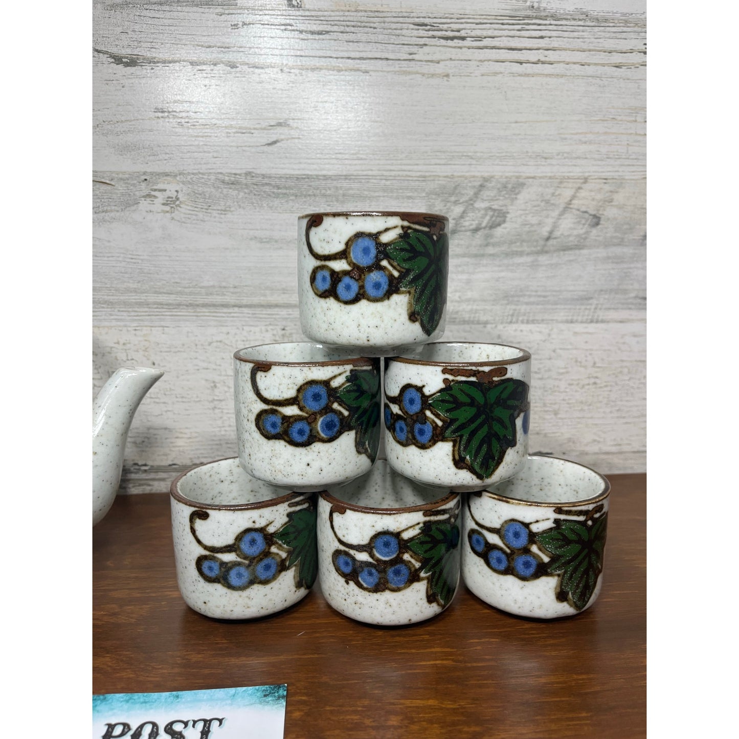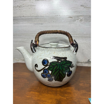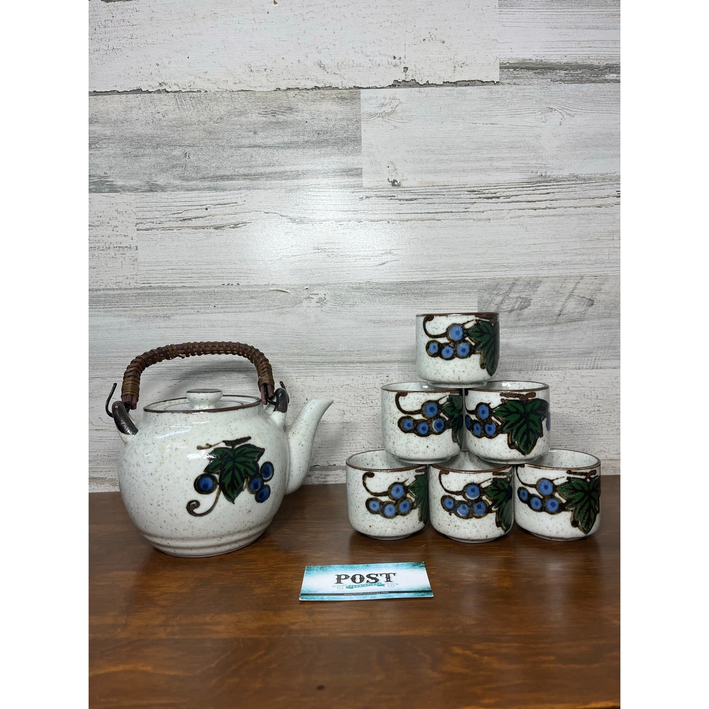 Vintage Otagiri Stoneware Pottery Grapevine Teapot W/ Six cups