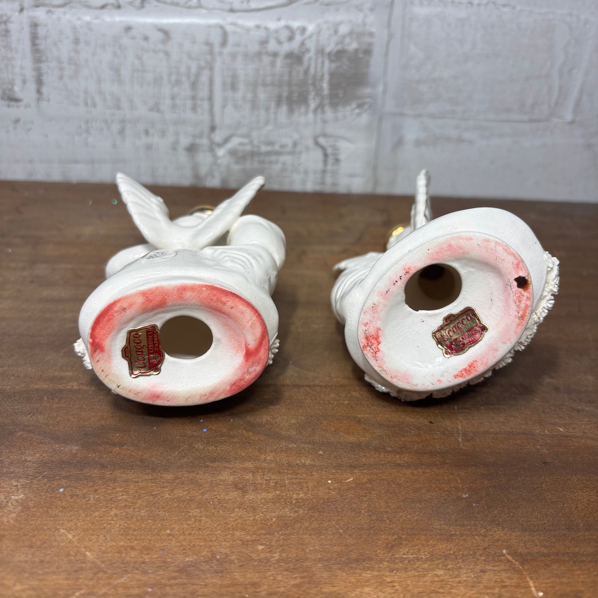 Vintage Ucagco Spaghetti Trim Angel Candle Holder Set